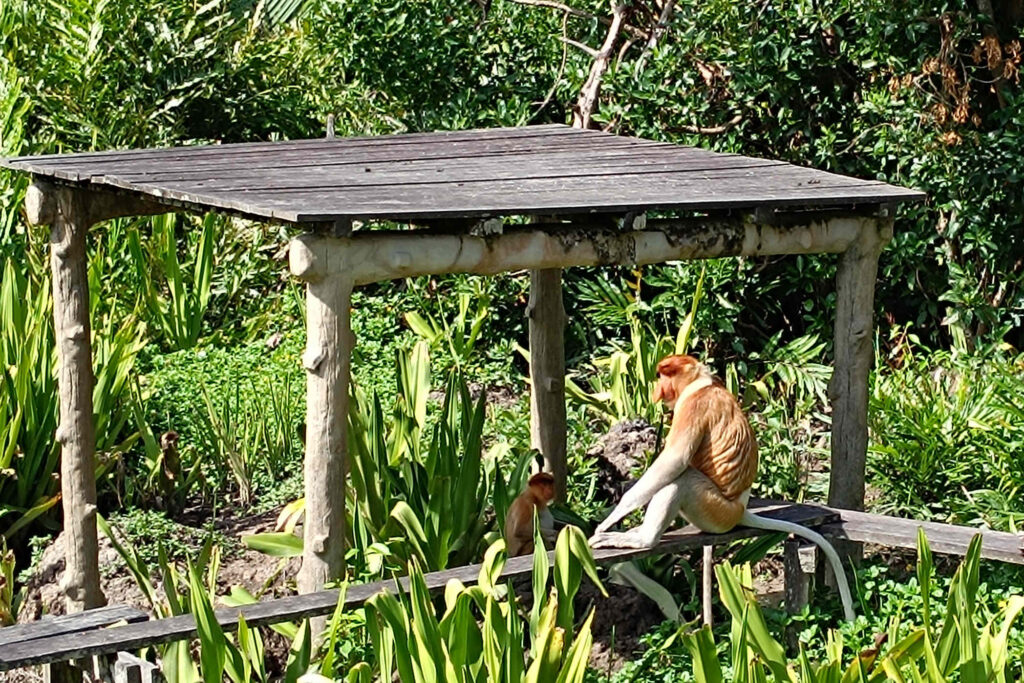 Souvenez-vous de nos vœux pour cette île, et bien tout est désormais coché : les nasiques et les orang outan en liberté et les Nepenthes !! Ok les Nepenthes seulement en jardin botanique…. Mais pour les voir en « liberté » il aurait fallu grimper grave et affronter les sangsues…. Prêts pour le premier obstacle mais pas équipés pour le second…
