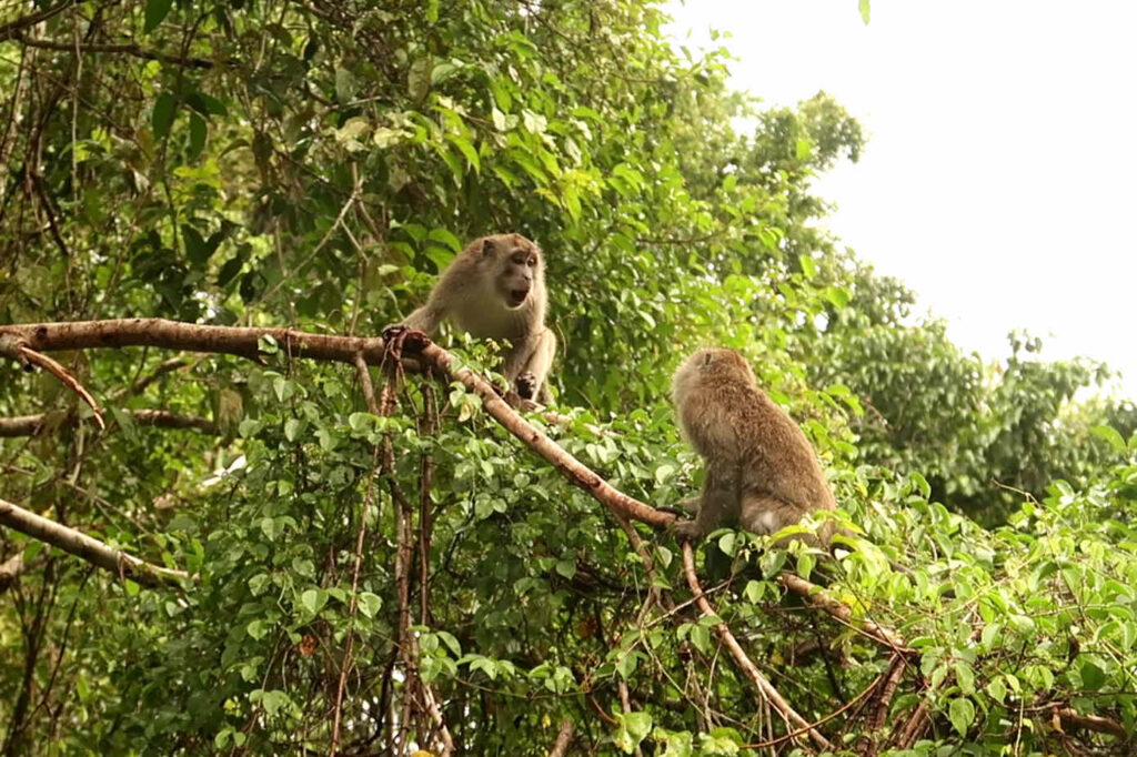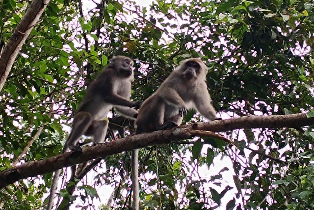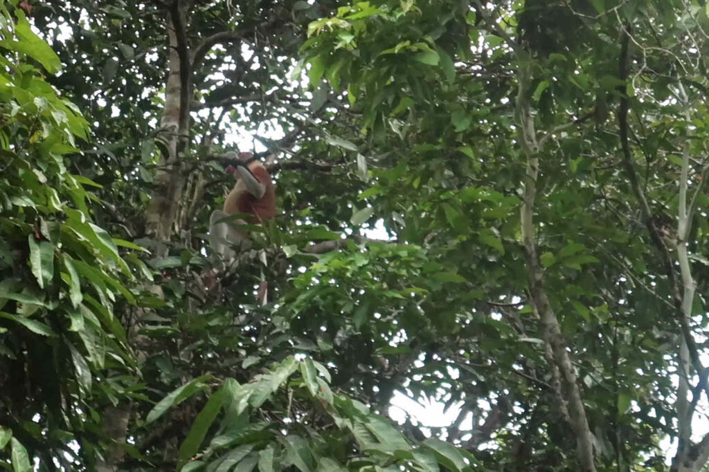 Comment ça des orang outan en liberté nous diriez vous ?? On ne voit rien sur les Instants!!! Et oui nous ne voyons rien car le premier n’était en fait que sa silhouette observée via les jumelles et l’autre beaucoup plus proche mais plus joueur (de cache cache). D’ailleurs celui-ci est bien connu du coin, on sait que les orang outan mâles vivent seuls et bien lui s’est fait adopté par une famille de macaques avec qui il traîne tout le temps. Osman l’a un jour vu se faire épouiller par 4 macaques: tranquille !!😆 C’est un ado très joueur paraît il!