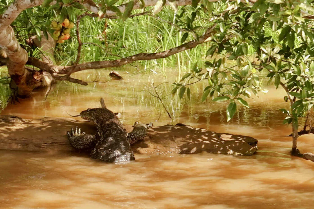 Le cadre ainsi dressé, fut notre terrain de jeu pendant toute la période de notre séjour. Nous avons remonté, descendu la rivière de multiples fois avec Romi, puis avec Osman, avec chaque jour son lot de découvertes ou de redécouvertes. En tout cas s’était génial à chaque sortie. Parmi ces moments précieux nous retiendrons les temps forts comme la première rencontre avec les nasiques sauvages. Mais pas seulement ! D’autres singes étaient venus nous saluer. Les éléphants pygmées de Bornéo nous avaient réservé un petit spectacle en bord de rivière. La rencontre d’un énorme varan m’avait estomaquée. Notre chemin croisa: oiseaux tout aussi variés que colorés, quelques serpents aussi, histoire de bien réaliser où nous étions.