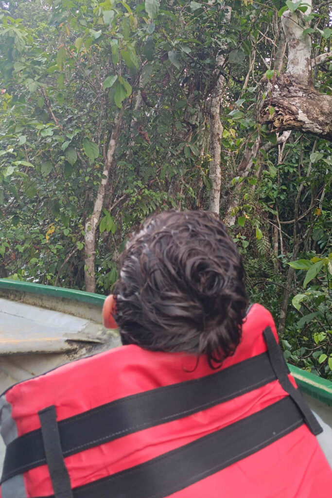 Pour commencer May nous a servi un petit chose à manger et aussitôt après nous embarquions sur la barque de son mari Romi pour une première « cruise » (c’est ainsi que cela s’appelle là bas). Cette merveilleuse balade nous a permis d’entrer dans le décor, avec des singes, des oiseaux, du vert, des odeurs, et la grosse averse pour clôturer.