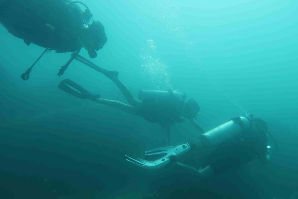 On se dépêche de s’équiper quand même, et c’est parti pour 40 min d’évolution à un peu moins de 20m de profondeur.