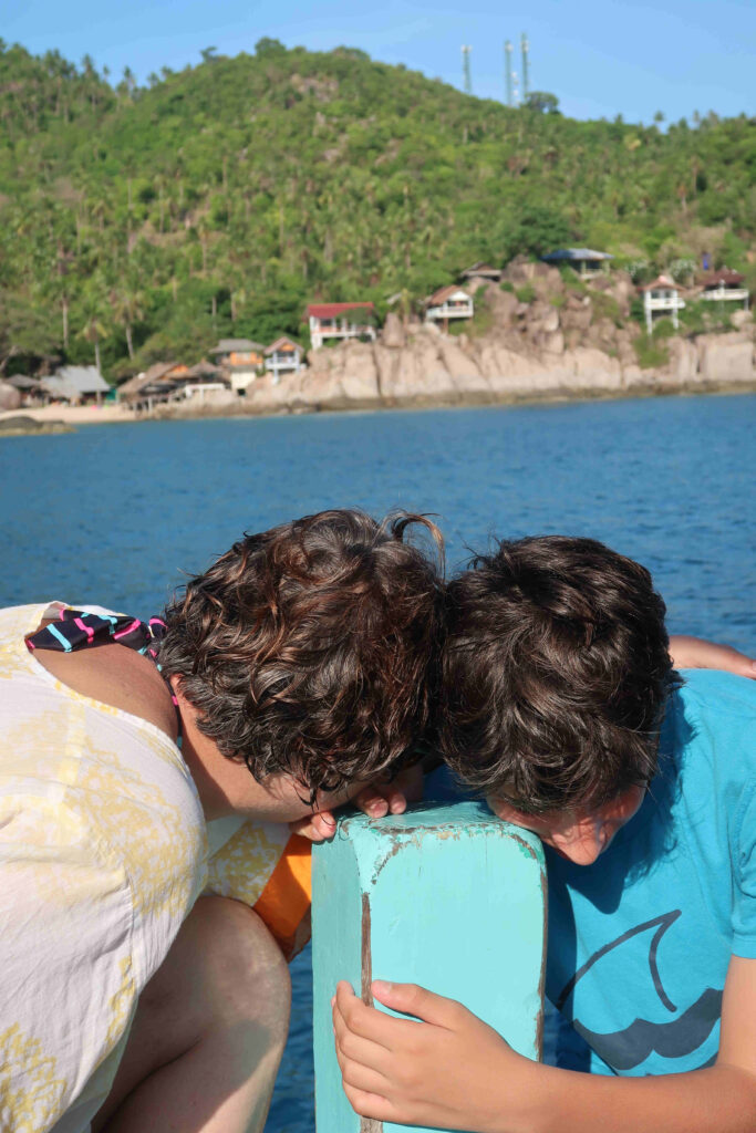 Une nuit sur Bankok et, dès 6h00 le lendemain, nous étions dans un bus puis un ferry pour enfin arriver à Koh Tao (une île dans de sud du golfe de Thaïlande) en fin d’après midi.