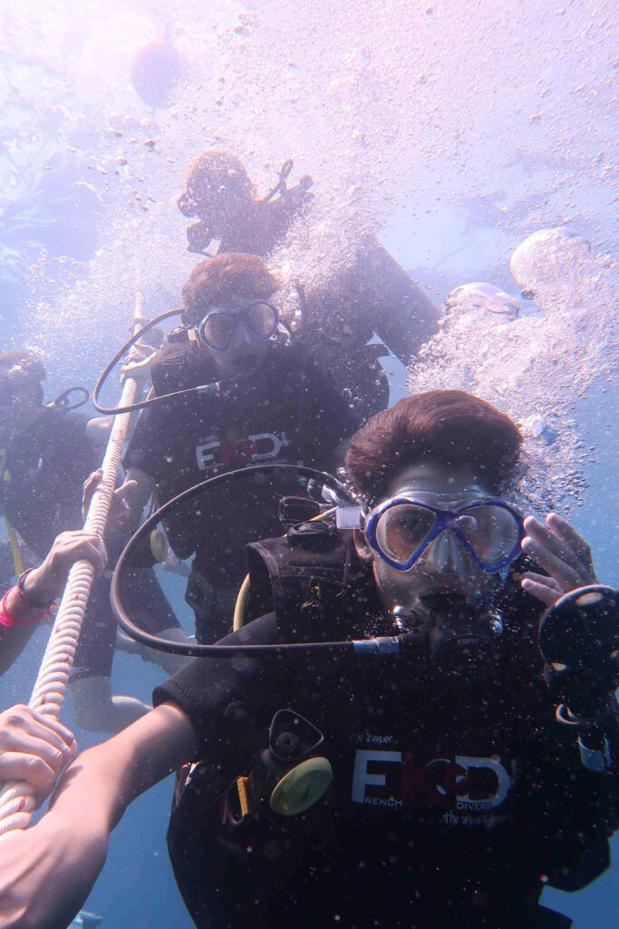 Allez, c’est parti pour 2 jours de plongé avec le club « French Kiss Dive » – un club francophone. On souhaitait commencé nos premières plongés avec un moniteur francophone car cela faisait plus d’un an que nous n’avions pas remis de détenteur en bouche.