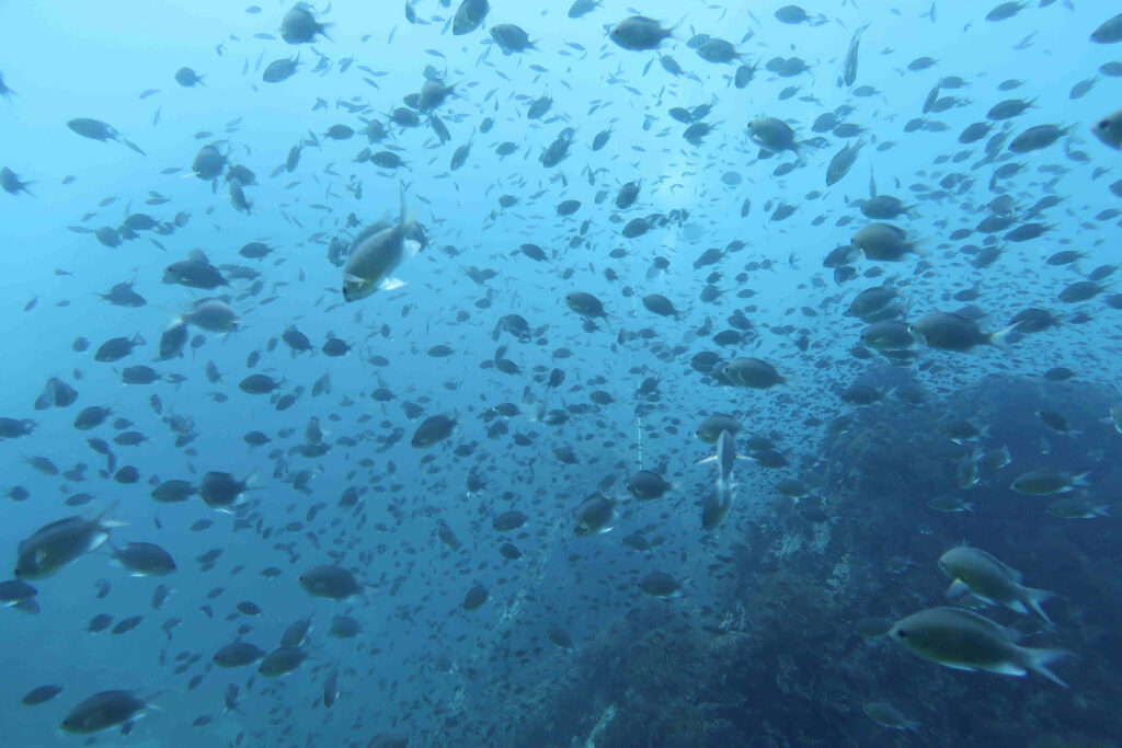 Des bancs de poissons énormes, magnifiques, des raies, des tapis d’anémones… Mais du géant placide des océans, nous n’en n’avons pas vu l’ombre d’un aileron…