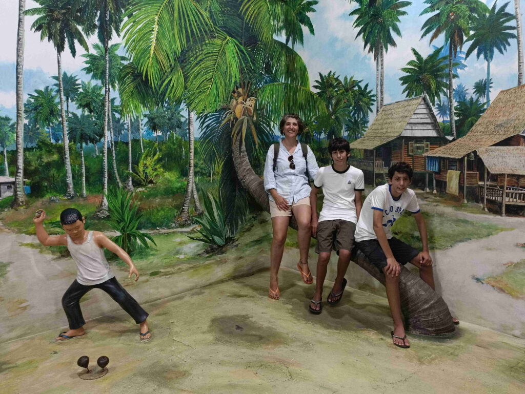 Depuis notre sentiment n’a pas évolué, les malaisiens sont adorables, très serviables et bienveillants. Nous ne sommes restés à Penang que 2 nuits, juste le temps d’acheter un nouveau téléphone portable et une carte sim, puis de visiter le musée des illusions d’optique. Nous nous sommes joyeusement illustrés sur des photos mises en scène avec les décors proposés. Un peu d’imagination, des cadres adaptés et on s’amuse comme des gosses!