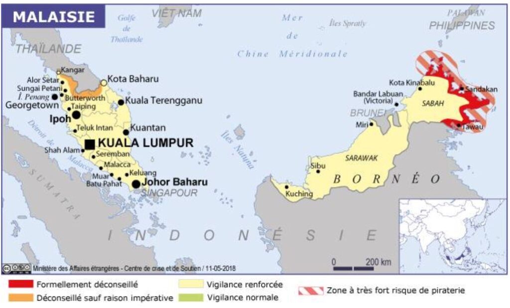 De plus, le ministère des affaires étrangères français est vraiment très frileux : de nombreux autres pays ne classent pas cette zone en rouge, mais souvent en orange, ou parfois en jaune. Et cela est surtout dû à des actes de piraterie Philippin avec rançon, quelques groupuscules islamistes radicaux aussi.
